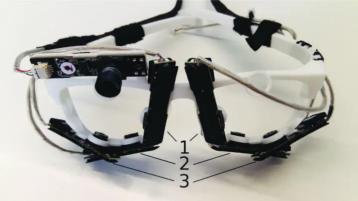 Despite their potential for a range of exciting new applications, mobile eye trackers suffer from several fundamental usability problems. InvisibleEye is an innovative approach for mobile eye tracking that uses millimeter-size RGB cameras, which can be fully embedded into normal glasses frames, as well as appearancebased gaze estimation to directly estimate gaze from the eye images. Through evaluation on three large-scale, increasingly realistic datasets, we show that InvisibleEye can achieve a person-specific gaze estimation accuracy of up to 2.04° using three camera pairs with a resolution of only 3x3 pixels.