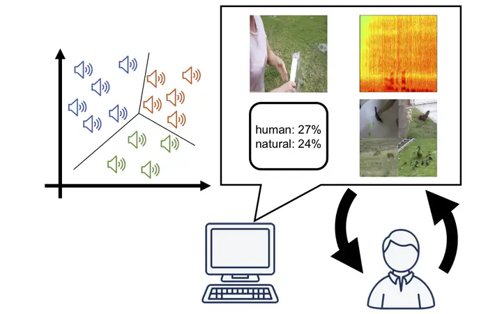 Interactive machine learning techniques have a great potential to personalize media recognition models for each individual user by letting them browse and annotate a large amount of training data. However, graphical user interfaces (GUIs) for interactive machine learning have been mainly investigated in image and text recognition scenarios, not in other data modalities such as sound. In a scenario where users browse a large amount of audio files to search and annotate target samples corresponding to their own sound recognition classes, it is difficult for them to easily navigate through the overall sample structure due to the non-visual nature of audio data. In this work, we investigate the design issue for interactive sound recognition by comparing different visualization techniques ranging from audio spectrograms to deep learning-based audio-to-image retrieval. Based on an analysis of the user study, we clarify the advantages and disadvantages of audio visualization techniques, and provide design implications for interactive sound recognition GUIs using a massive amount of audio samples.