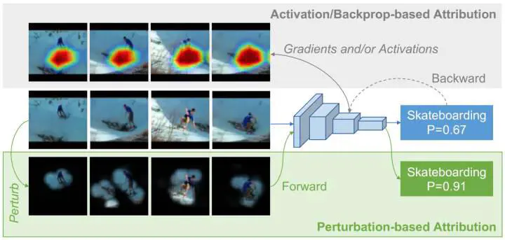 ‘‘Making black box models explainable’’ is a vital problem that accompanies the development of deep learning networks. For networks taking visual information as input, one basic but challenging explanation method is to identify and visualize the input pixels/regions that dominate the network’s prediction. However, most existing works focus on explaining networks taking a single image as input and do not consider the temporal relationship that exists in videos. Providing an easy-to-use visual explanation method that is applicable to diversified structures of video understanding networks still remains an open challenge. In this paper, we investigate a generic perturbation-based method for visually explaining video understanding networks. Besides, we propose a novel loss function to enhance the method by constraining the smoothness of its results in both spatial and temporal dimensions. The method enables the comparison of explanation results between different network structures to become possible and can also avoid generating the pathological adversarial explanations for video inputs. Experimental comparison results verified the effectiveness of our method.