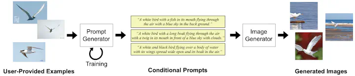 Recent progress in image generation has made it possible to create high-quality images. Techniques using diffusion models have shown great potential in producing high-quality images from simple prompts, attracting inexperienced beginners in deep learning. However, prompt-based image generation often produces images that do not match the user’s expectations. Merely describing an image might not yield the desired result, and users might struggle to describe what they want accurately. This study introduces a new paradigm of example-based conditioning for interactive image generation to address this useability challenge. Our method presents users with a selection of images, allowing them to define categories by choosing examples that match their objectives. These examples serve as training data for our system to learn to generate prompts conditioned on the categories, thereby creating a variety of images according to the category requirements. Through user experiments, we demonstrate the advantages of our approach compared to the prompt-based baseline.